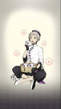 | 中華風衣装に身を包んだ中島敦。同じく中華風の衣装を着た泉鏡花と共に中華街の屋台を巡りつつ、予想以上の出費に涙する姿が度々見受けられた。 | ||||